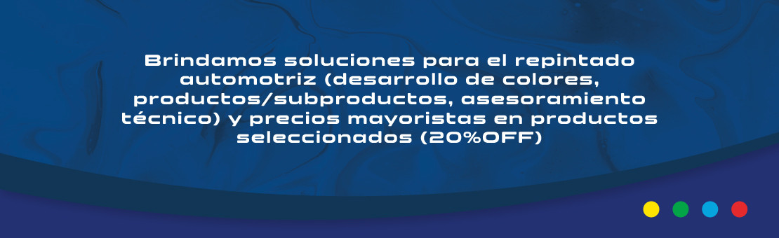 Empresa distribuidora de productos de automotor ideales para el uso de talleres, junto con un amplio catalogo que incluye marcas como Farben, Sherwin Williams, Tersuave, Bremen y más! Necesitas un color especifico para un auto y no tenés coloristas? Nosotros contamos un grupo de coloristas que se pueden encargar por vos! Solamente necesitamos que traigas una muestra a nuestra sucursal ubicada en San Lorenzo 1565, San Miguel, Buenos Aires y ellos se encargaran! Buscas algún producto y no lo tenemos en stock? Comunícate con nosotros vía Whatsapp o Mail y podremos solucionarlo!